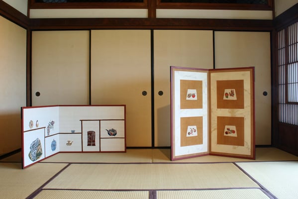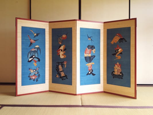 芹沢銈介は、東京高等工業学校(現・東京工業大学)図案科卒業後、生涯の師である柳宗悦との出会い、また沖縄の染紅型を知りこれを機に、染色の道を歩み始めます。創意あふれる作品を次々に発表し、1956年には人間国宝に認定され、その評価は世界的なものとなります。本展では、その作品の一部 型絵染の屏風、暖簾、肉筆画の軸や額など約30点ほどご紹介致します。